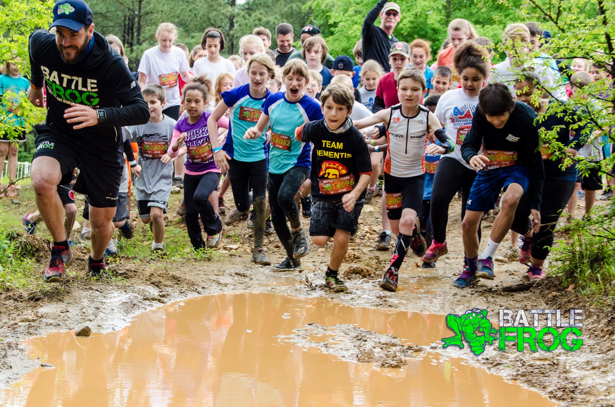 BullFrog Mile: For your slightly older kids there is the BullFrog Mile. Your children can test themselves on at least ten of the full-size obstacles the top competitors tackle, but with a more manageable distance of one mile. Designed for kids ages 8 to 13, your kids can sample the mud crawls, climbing walls, slip and slides and our “boot camp” military fitness exercise. All with Navy SEAL motivation throughout the course as your kids work with other racers as an individual or on a team. The BullFrog Mile combines the right amount of challenge with the right amount of fun.