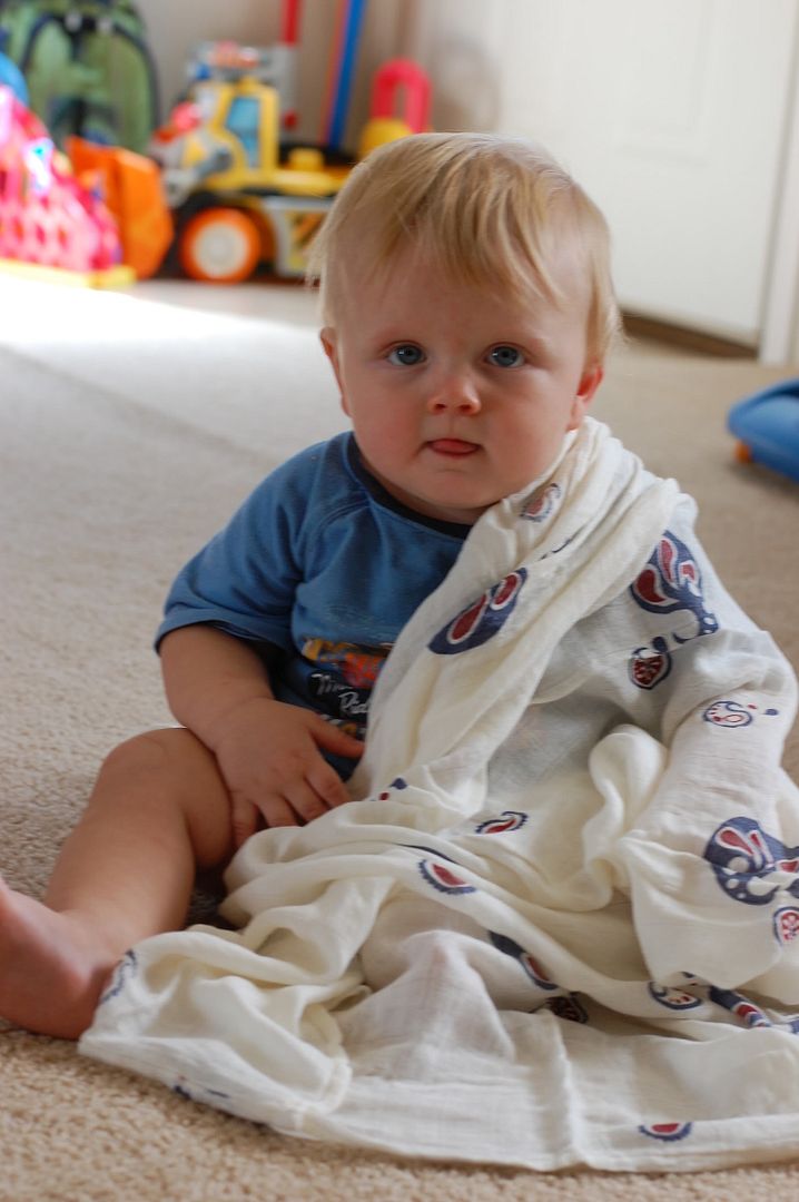 | Luke at 11 months with his Bamboo Muslin Blanket |