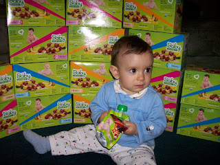 We had the opportunity to try a new line of baby food from Baby Gourmet. This line is 100% organic, no fillers, thickners, unsweetened, kosher, and BPA free packaging. It comes in those neat little squeeze pouches that you can let your baby suck out of the package or squeeze a little on the spoon. I love those pouches!