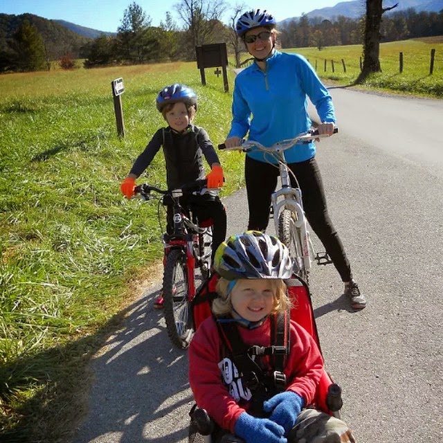 Now I admit that when my husband first suggested the 11 mile Cades Cove loop for a bike ride instead of our original plan which was the Virginia Creeper I wasn’t aware that we would be riding with the cars. We had taken the girls when they were little to Cades Cove and I just assumed I had missed something since we drove through it with them. I was a little nervous since Davis would be on his own bike and the amount of traffic through there is crazy! Anyone that is familiar with the mountains of Western NC were we live or the area that Cades Cove is located, knows that you aren’t going to get far without a hill. Very little flat ground in our area. Sure, Davis had been practicing on hills since that is his weakness but being only seven he still has a way to go when it comes to really being able to pull the hills. That and he has a very hard time changing gears on his bike.