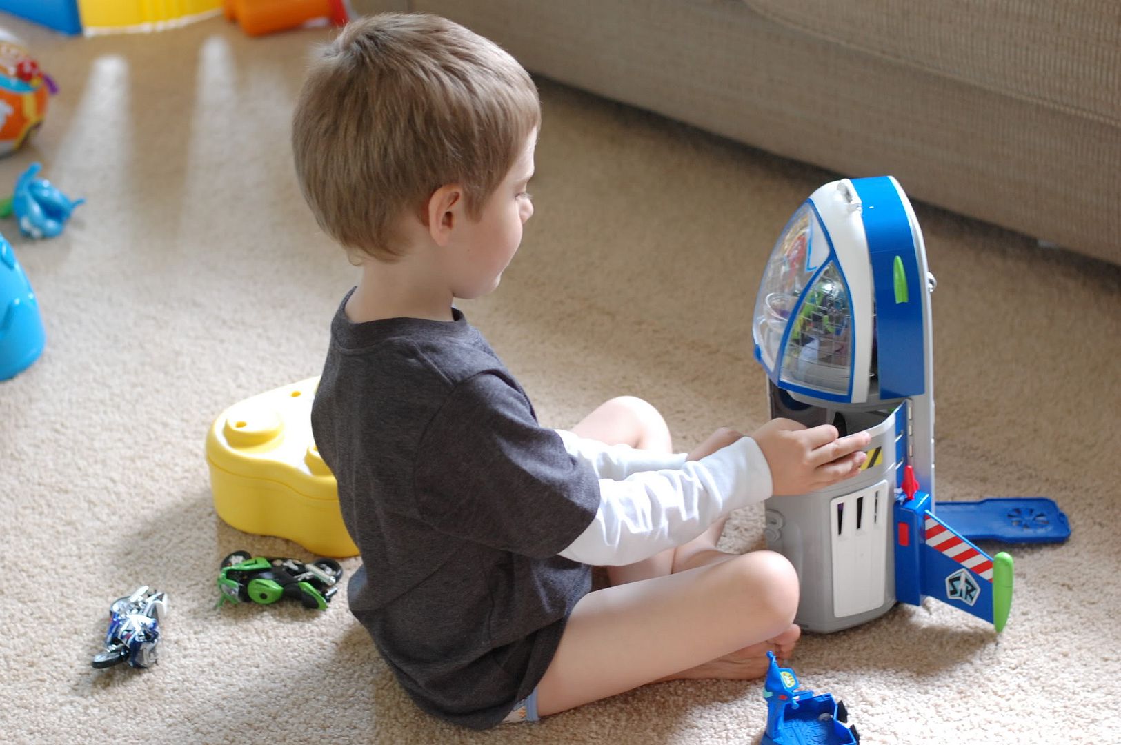 First off the Toy Story Buzz Lightyear Spaceship Command Center is super cool! My son’s eye lit up the minute he opened the box! He has yet to put this toy down! Usually he only plays with toys for a little while and then the interest is gone, but not with this toy. I think his favorite part of this toy is that it has the voice PA Amplifier so that he can say “To infinity and beyond”. And when the Spaceship does the sounds like it is taking off, that’s when his spaceship goes soaring through the air!