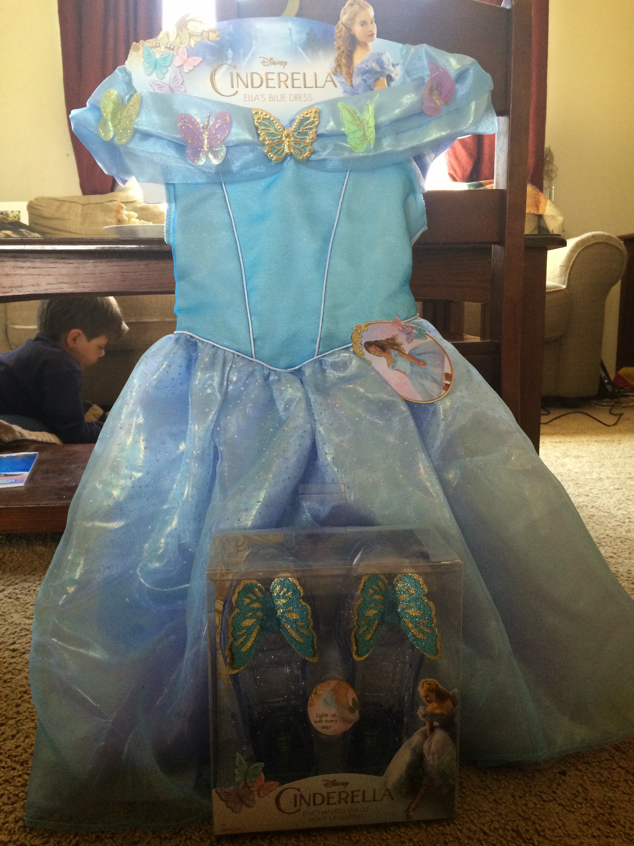 All in all we loved this. Not only is the dress just beautiful, it’s perfect for any little girl that likes to pretend she is a princess. Depending on the age of the child, obviously the dress is going to fit a little different. However, most of us moms know that they will wear them until they outgrow them. The shoes, just like most pretend dress-up shoes are bigger on the smaller little ones, but I have yet to see a little girl that cared about that!