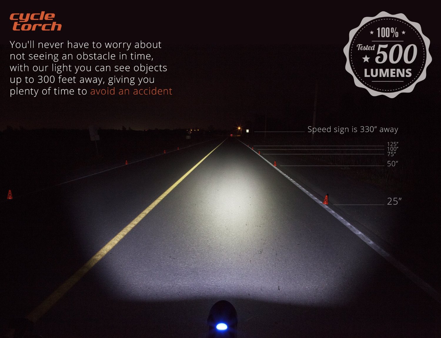 The Cycle Torch Shark is a 500 lumens bike headlight. I have a headlight on my bike that I thought was super bright until my husband started using this one on his. The Cycle Torch Shark can easily put mine to shame.