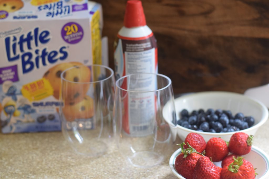 We started with Entenmann’s® Little Bites® as the bottle layer, next we added a layer of fresh strawberries and blueberries. Followed by a homemade strawberry sauce.