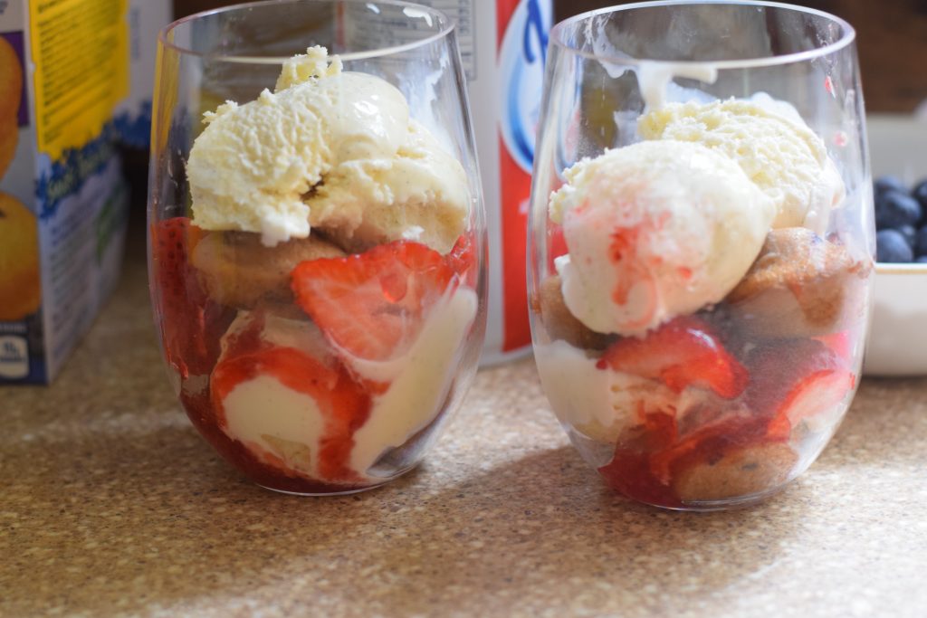 We repeated the layers one more time and then finished with whipped cream, blueberries and strawberries.