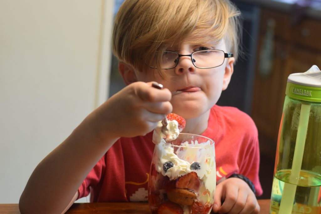 Luke on the other hand had a different idea in mind when it came to his snack creation. He is a huge fan of ice cream and decided that we should make ice cream sundaes using the muffins, so that’s what we did.