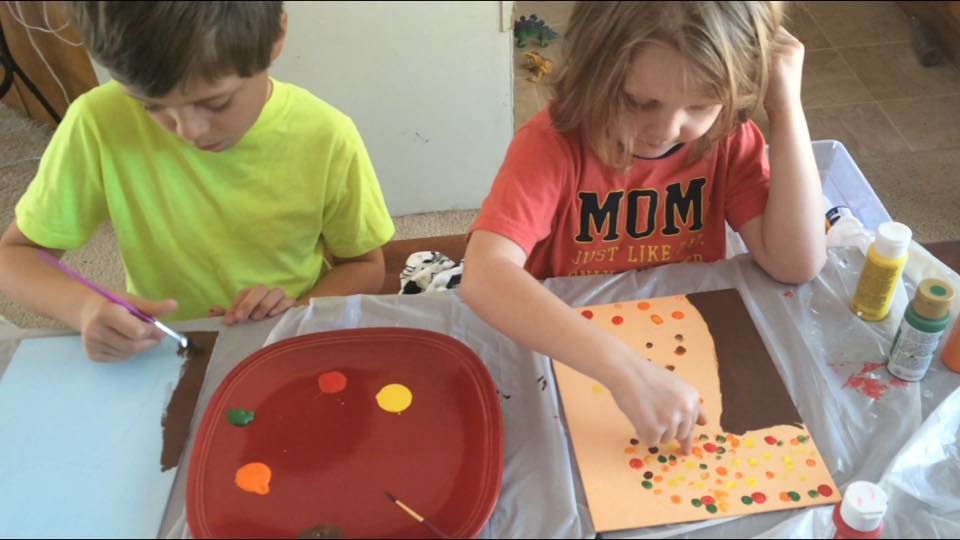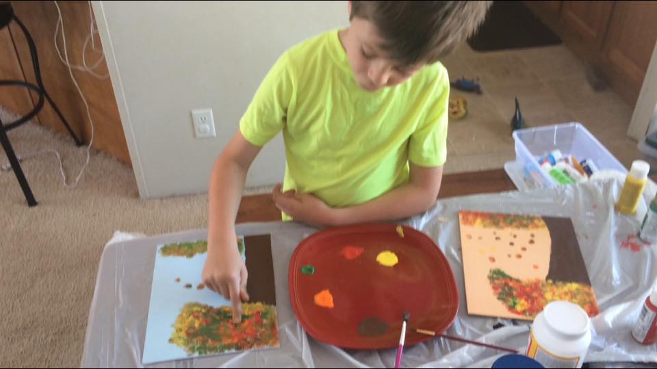 When he finished his tree trunk, both boys picked out the colors they wanted for their leaves. That’s when the real fun began.