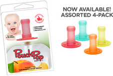 There are a few things I love about this product! First off it is made of the same material as those hospital pacifiers which will make the transition from bottle/breast/pacifier to a pouch very smooth. Those pouches are hard plastic which my kid rejected at first. This would have helped by being similar to his pacifier. Babies will be naturally inclined to ‘suck’ on PouchPop. Another thing is that those pouches can be a little rough around the top edges and PouchPop really helps keep things smooth and comfortable for baby. Last BPA & Phthalate free is a good thing! Jace who is 2 is very familiar with those little pouch foods. He had no problem maneuvering PouchPop and ate his pouch with no issues.