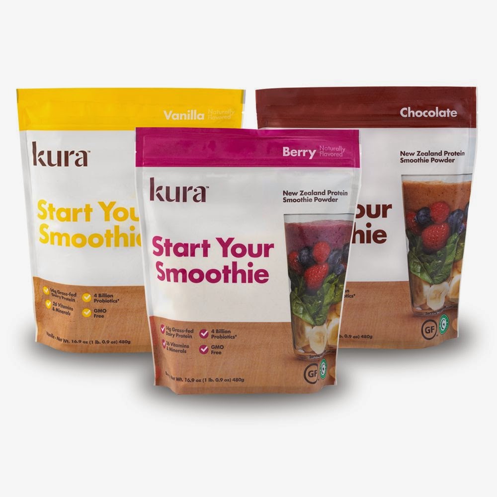 Recently we had the opportunity to test out a different type of powder from Kura. It’s an all-new Kura: Start Your Smoothie powder that offers 14 grams of pure, grass-fed, antibiotic-free New Zealand dairy protein, vitamins and minerals while still having a great taste. For my four year old I would mix a scoop of the Vanilla Kura Start Your Smoothie, 4 oz. unsweetened vanilla almond milk, 4 oz strawberry greek yogurt and a handful of blueberries or strawberries and a little spinach and blended. He never complained at all and always drinks the entire smoothie.