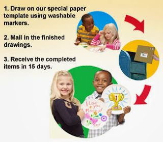 This kit included everything! Circle paper to draw on and markers to work with. The only limits were you own imaginations! I love how this will be a keepsake for many years to come. I can even envision my grandkids using the plate their daddy created when he was little! How cool would that be? It was easy to fill the forms out and mail away our drawings. The finished product was perfect!