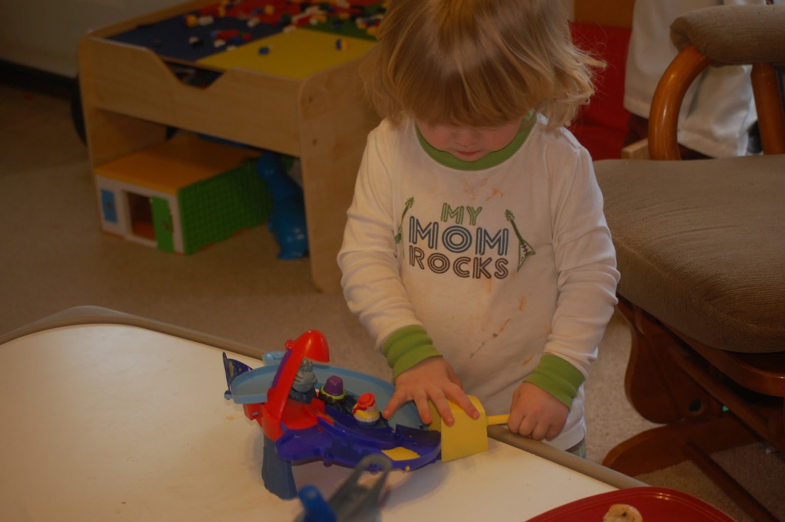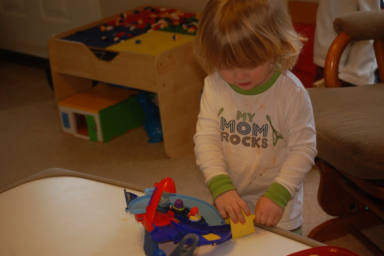 The Zing’ems 2″ figures features a bobble shape and a rolling bottom which both my boys love. They have a car table with a cover (you can see him playing on in the above picture). They get on opposite sides of the table and push them as hard as they can so they will crash. When they do crash, no worries! They just spin around and pop back up for additional fun. These come in packs of two as I mentioned above and have a SRP of $6.99 a pack. The Zing’ems Playset comes with one Zing’em and has a SRP of $14.99. With Easter just around the corner, these would be awesome additions to an Easter Basket.