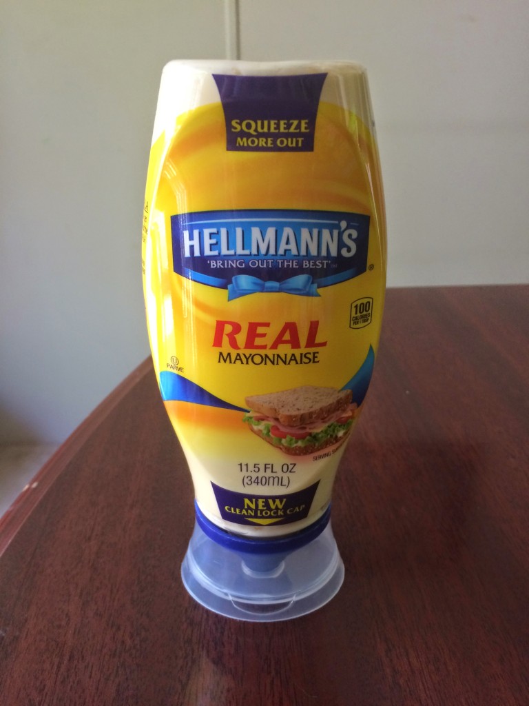 Battling with the mayonnaise! Beating it on the counter, shaking it like crazy and then when it does decide to come out, you have a giant blob of it right in the middle of the bread? The struggle was real up until about a week ago when I discovered the new Hellmann’s mayonnaise design!