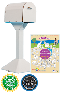 o A 10” x 10” x 24” toy mailbox that can be assembled in two easy steps with no tools or glue, and is made from sturdy corrugated cardboard that is 100% recyclable.