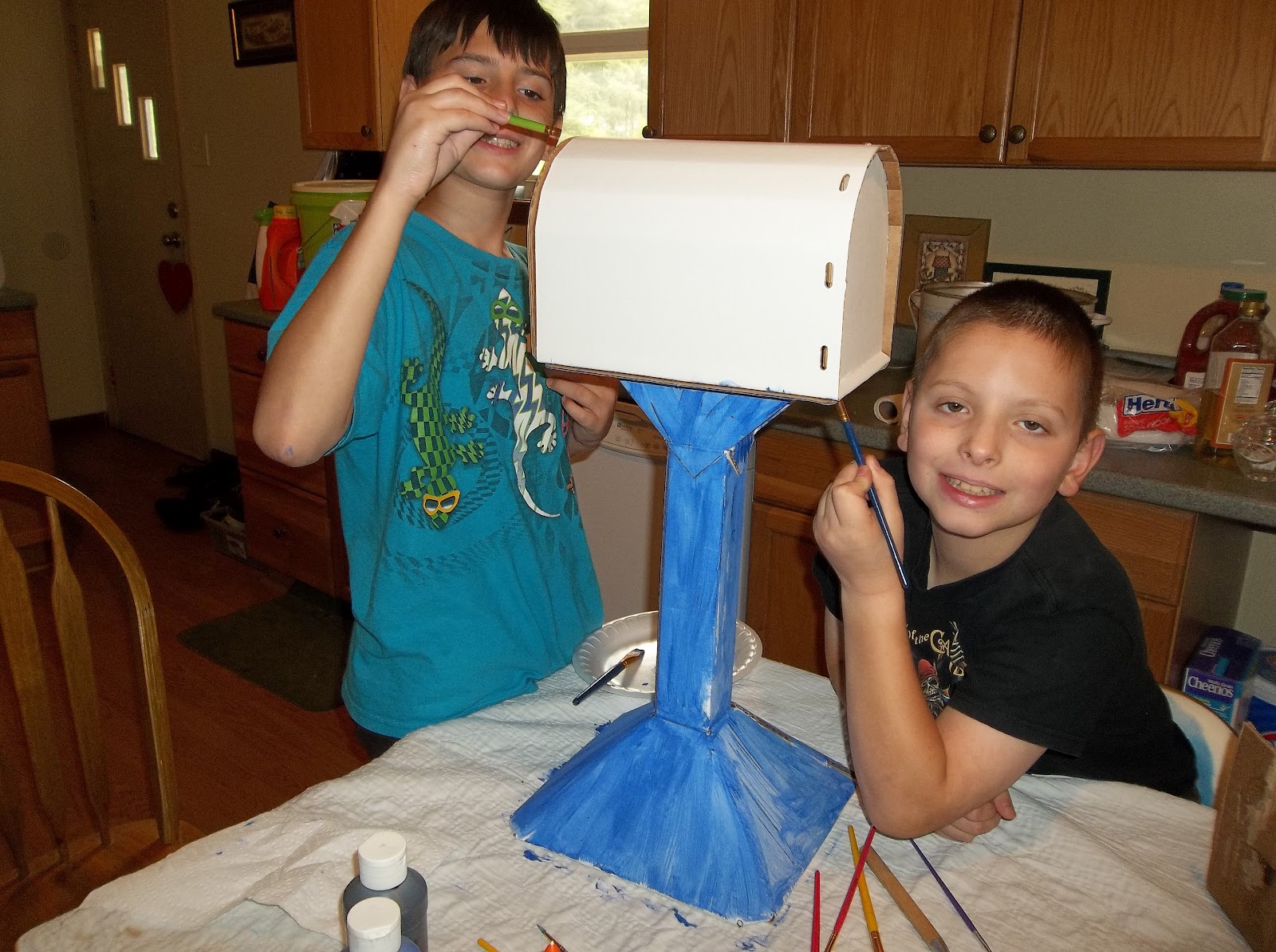 This project was so much more than just arts and crafts. The boys had to use their thinking skills to design their look. They had to work together to complete the project and they had to think of materials to use that we had on hand. I was incredibly proud of how well it turned out and how well they worked together. We’ve decided to put the mailbox ontop of the piano this week and ‘see’ if any letters show up. I think it might be neat to check once a week and see what we can find in there. Perhaps notes of encouragement?