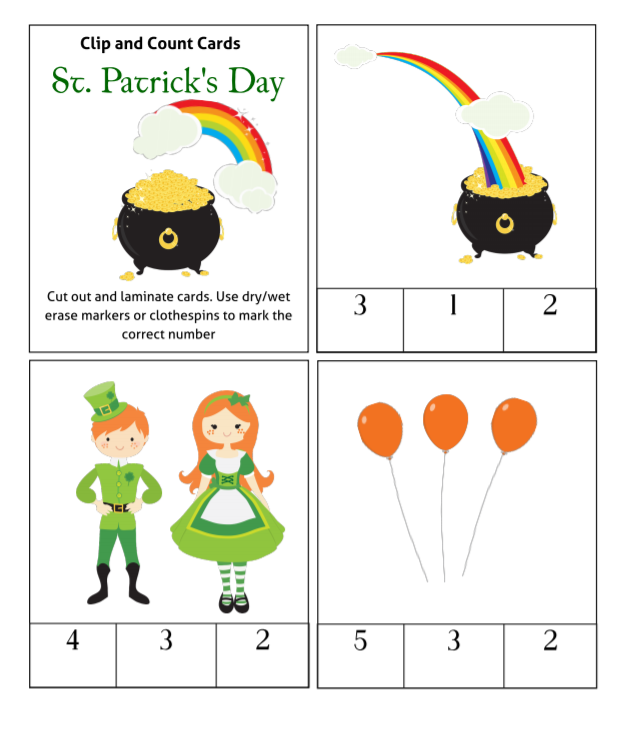 Most of the worksheets found in this printable pack can be used time and time again with lamination. They work wonderful in Math or Language Art stations in the classroom. The count and clip number cards go up to 15, and a great way to incorporate counting practice.