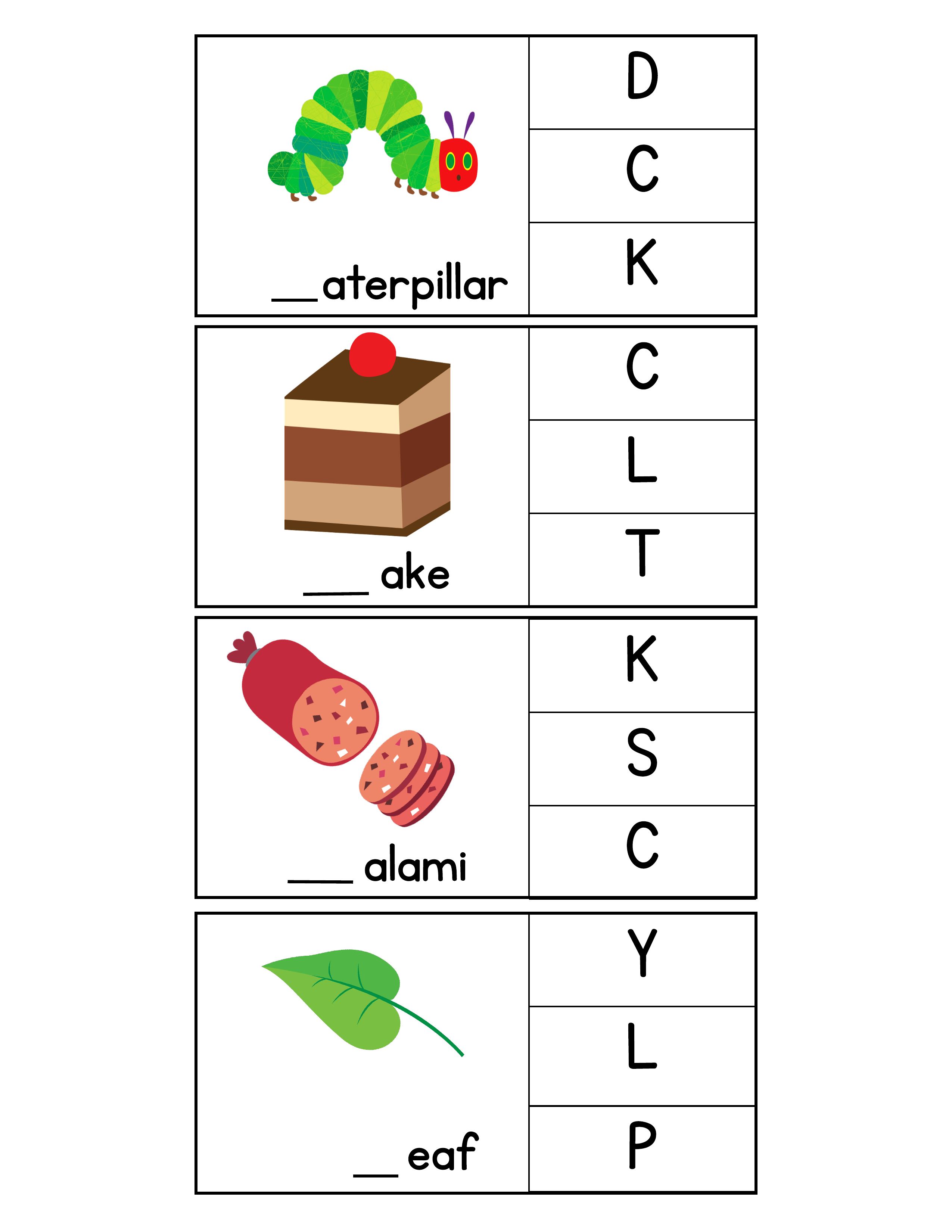 My boys have always adored The Very Hungry Caterpillar, written by Eric Carle. That’s why when my youngest was learning to read, I decided to create these fun Beginning Sounds Clip Carts.