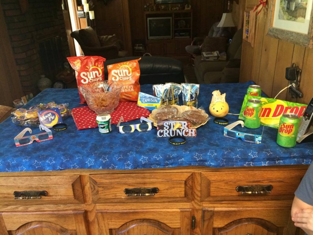 My mother-in-law wanted to throw an eclipse party for the kids, so lunchtime kicked off the fun. With a hot dog lunch followed by eclipse-themed snacks, we were ready for the fun to begin.