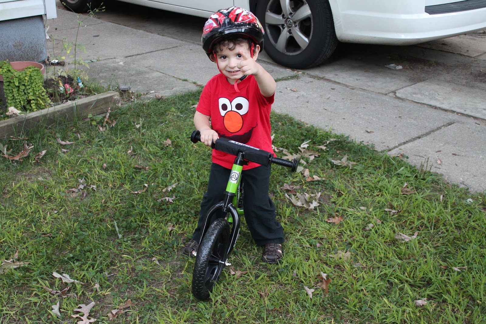 Jace was so excited when his bike arrived. He begged his Daddy to assemble it. Wasn’t to much work and only took a few minutes to be out of the box and ready to go. There is definitely a learning curve for this. He had seen his big brothers peddling so he actually asked where the peddles were. Then he walked the bike around the living room. I noticed that within a few weeks he already had figured out how to sit back and walk the bike. I know it is just a matter of time before he will be mastering the bike and coasting around. I personally love the concept now. No peddles to mess with so you learn the balancing needed for 2 wheels instead of relying on training wheels. I honestly can’t wait for the fall weather here in the Northeast so we can spend more time outside and he can really get a hang of it all. (It has been a brutal summer of hot weather or rain!)