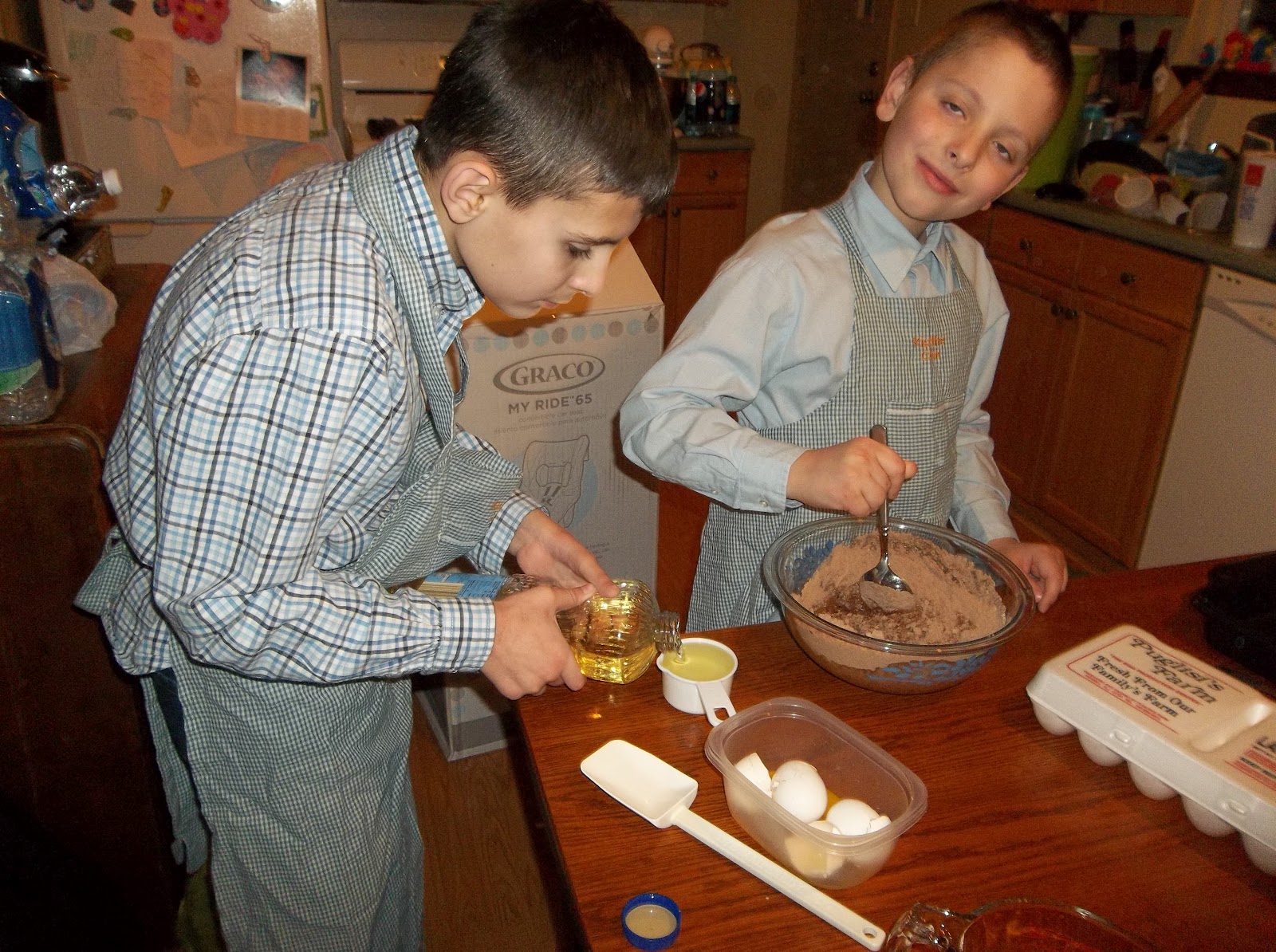 My boys were so excited that I didn’t even get to wear it yet! Austin my oldest took the adult sized and Xander wore the junior size and we made a batch of brownies. Cooking with children is so much fun and it is a great life lesson for them to learn for sure! I’m sure that we will get many years of use out of them as well because it won’t be long before my big boys will be out of the house but I’ll still have Jace who is growing up fast!