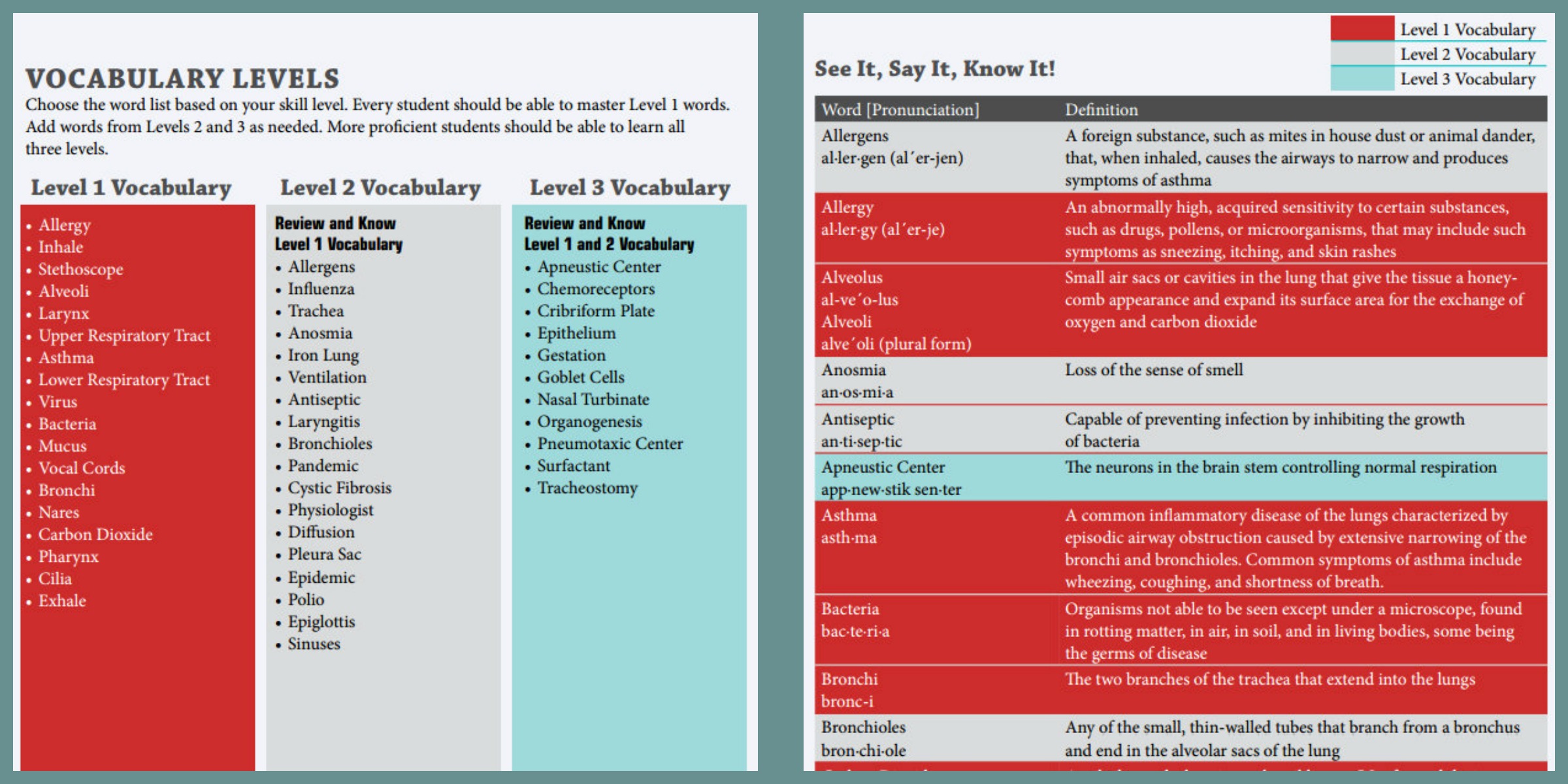 This book is designed so that you can use it with different grades. The vocabulary list and definitions are broken down into levels. As your child learning the level 1, then it’s time to go into the level 2, etc.