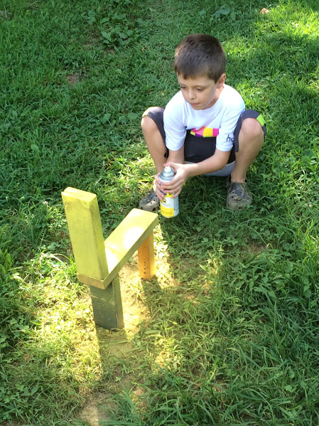 Davis loves hanging out in the “man cave” with his dad, and this week while he was out there, he found some scrap wood and made a giraffe. He has painted the hat and here is painting the giraffe. I have to run to the store later this week to pick up some brown paint so he can finish it up. He is proud that he did it all by himself.