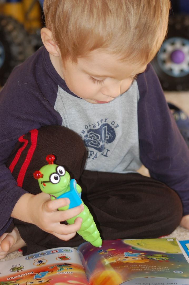 Did you now that recently Vtech has came out with a new product to encouraging reading called the Bugsby Reading System? Bugsby is an adorable little guy that my son absolutely loves! He is so easy to handle for little hands and even his antennas light up when you turn him on. Bugsby takes them on fantastic adventures that involves reading and even playing games throughout the books and is recommended for children ages 3-7. Here is a little video that I managed to capture while he was playing with Bugby.