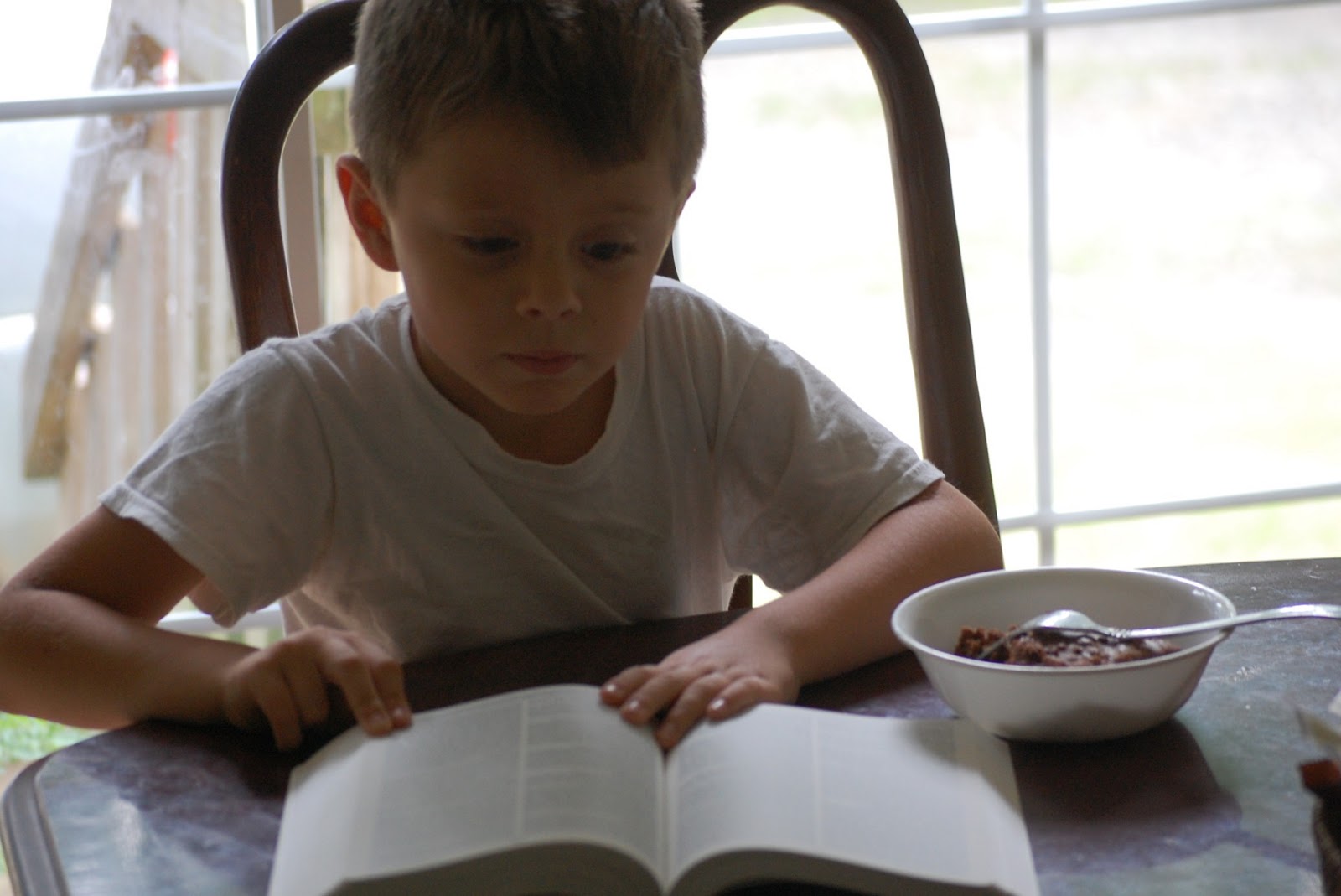 | He can even look at it while enjoying his dessert. Yes, he managed to some how get some of his dessert on it, but it wipes right off. |