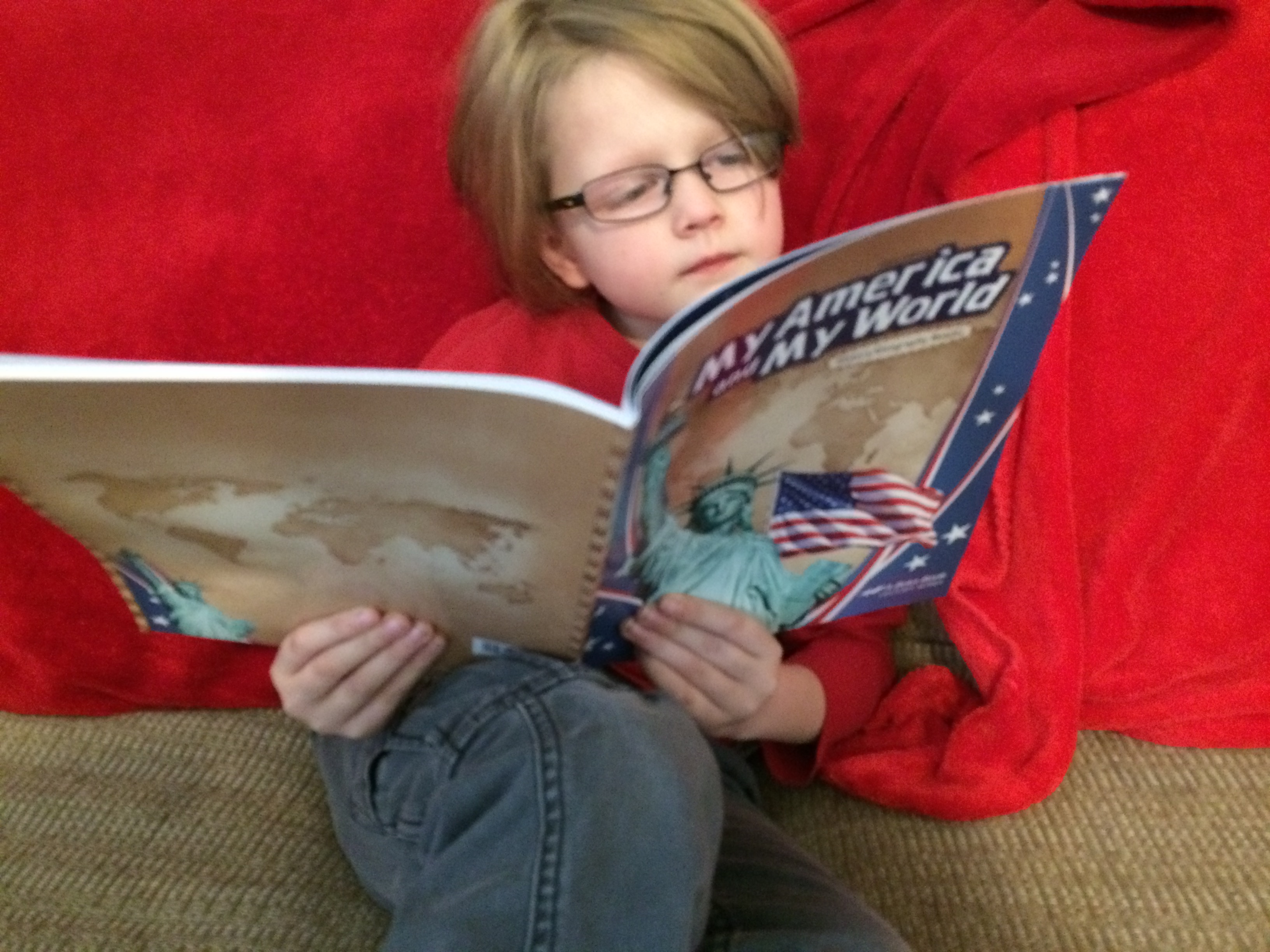 As far as history goes, it’s still going great as well. He’s loving history now that we have switched to the Abeka and dropped Story of the World. He’s learning about early American history and looks forward to his lessons daily. We add to his lessons with books and activities and it’s been great.